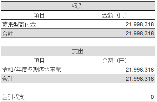 ※いただきましたご寄付につきましては、「令和7年度冬期湛水事業」の事業費の一部として充当いたしました。